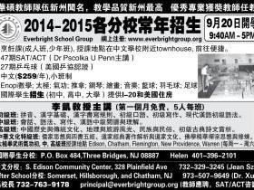 华硕文化教育学院成立于2001年,每年夏令营,教授简体中文, 英日印文,乒乓球,舞蹈(和肚皮舞),手工, 网球,羽毛球,篮球,足球赛,SAT I and II, 钢琴,声乐,武术, 太极,领导能力,工作咨询等。网址:www.everbrightgroup.org (732)763-9178, principal@everbrightgroup.org